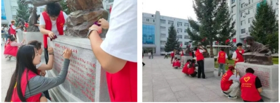 艺术与传媒学院组织新生参与校园“十大英模广场碑文描红”志愿服务活动,促使新生在实践体验中感悟英模精神,增强社会责任感,引领他们为师生和社会服务。
