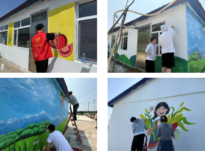 艺术与传媒学院“艺心”志愿服务队赴绥化市青冈县昌盛镇,开展为暑期“三下乡”活动。实践团深入田间村落,实地调研历史文化与农耕传统,捕捉创作灵感,围绕“乡村生活”“农耕文化” 主题,融合现代审美与乡土元素,在酷暑中完成墙绘,为乡村注入艺术活力。他们以专业技能践行“请党放心,强国有我”誓言,用艺术之笔点亮乡村,书写了服务乡村振兴的青春篇章,彰显了青年在民族复兴伟业中的担当作为。
