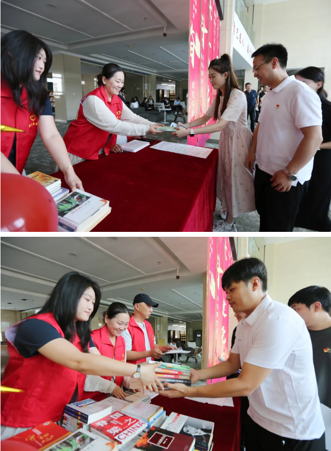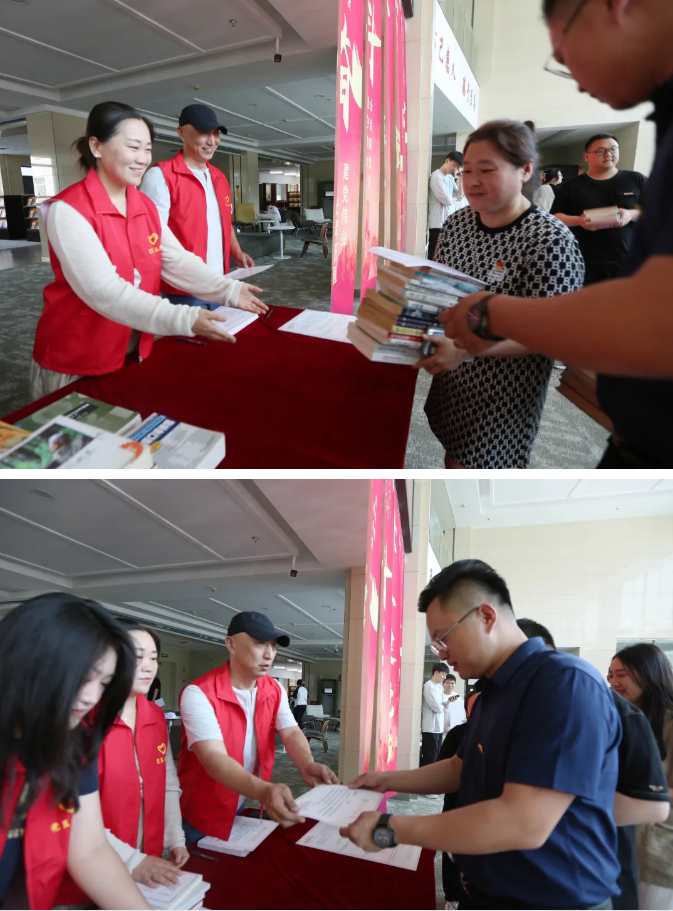 上午9时,活动正式拉开帷幕。各级党组织积极响应学校党委号召,精心组织,积极参与。党员代表们满怀热情携带大家捐赠的精选图书,有序进行现场捐赠。书籍种类丰富,涵盖党建专著、经典文学、艺术鉴赏、专业教材、青少年读物等多个领域,每一本都承载着对知识的尊重和对学生成长的殷切期望。现场党员同志们纷纷表示,捐赠图书不仅是资源的共享,更是一次深刻的党性教育实践。通过捐赠,可以让闲置的书籍发挥更大的价值,助力丰富馆藏资源,优化阅读环境,共同营造爱读书、读好书、善读书的浓厚校园文化氛围。