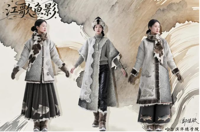 艺术与传媒学院服装工程系首次发布的“龙江赫哲非遗时装画静态展”吸引了众多参会者驻足。该系列以黑龙江冰雪文化为灵感,利用虚拟技术,将传统刺绣、剪纸等元素转化为未来感时装,并于抚远市非遗护中心展示。相关设计已与省内文旅企业达成合作意向,计划应用于数字非遗博物馆中动态呈现。