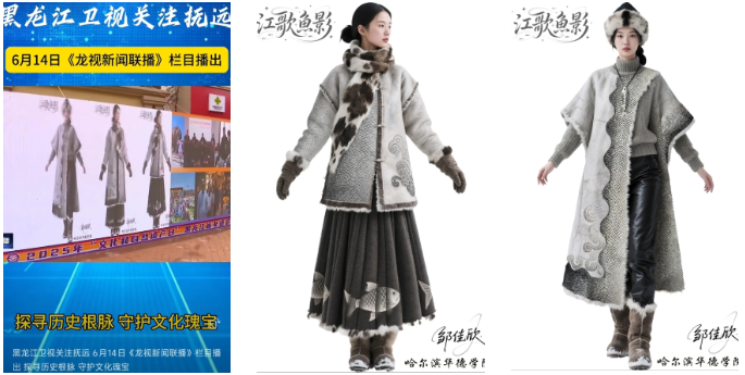 在展区现场,艺术与传媒学院服装工程系师生借助AIGC技术,呈现了赫哲族鱼皮画、赫哲族鱼皮服饰技艺等黑龙江非遗项目的创作过程。项目负责人表示:“我们通过算法训练让AI学习非遗纹样与工艺逻辑,既保留文化基因,又赋予其现代审美表达。”