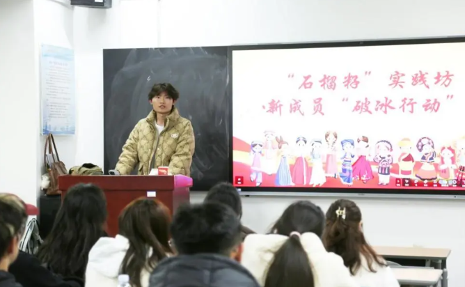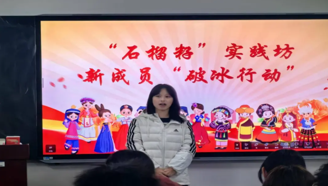 活动伊始,“石榴籽”实践坊首届队长与各组组长率先登场,以亲切幽默的自我介绍为活动暖场,特别分享了实践坊“像石榴籽一样紧紧抱在一起”的民族团结初心。随后,新老成员依次上台,用独特的方式介绍自己的姓名、民族、专业与兴趣,一句句真诚的问候、一张张灿烂的笑容,不仅拉近了彼此的距离,更让不同民族的文化基因在此刻交融,为现场注入了“各民族一家亲”的温馨氛围。